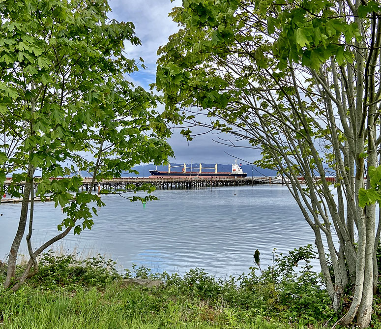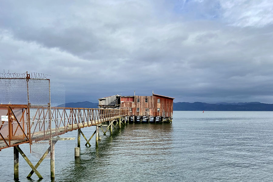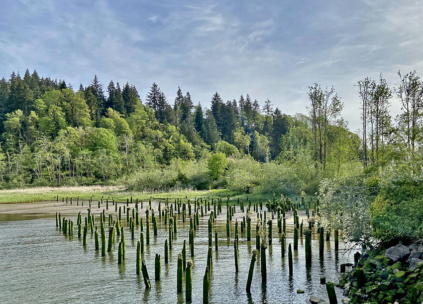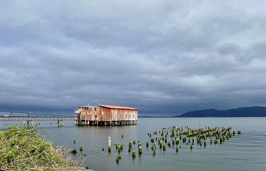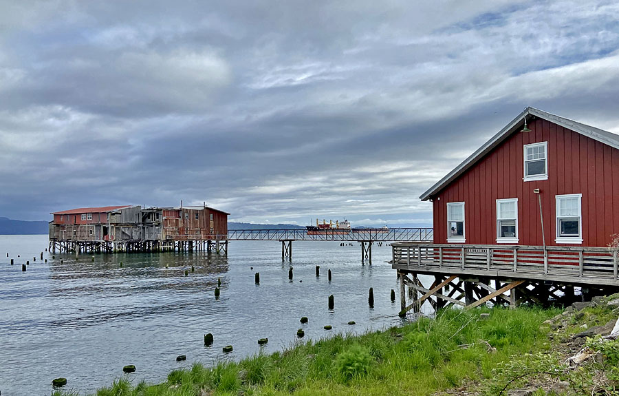The remnants of wooden bridge/road to the cannery.