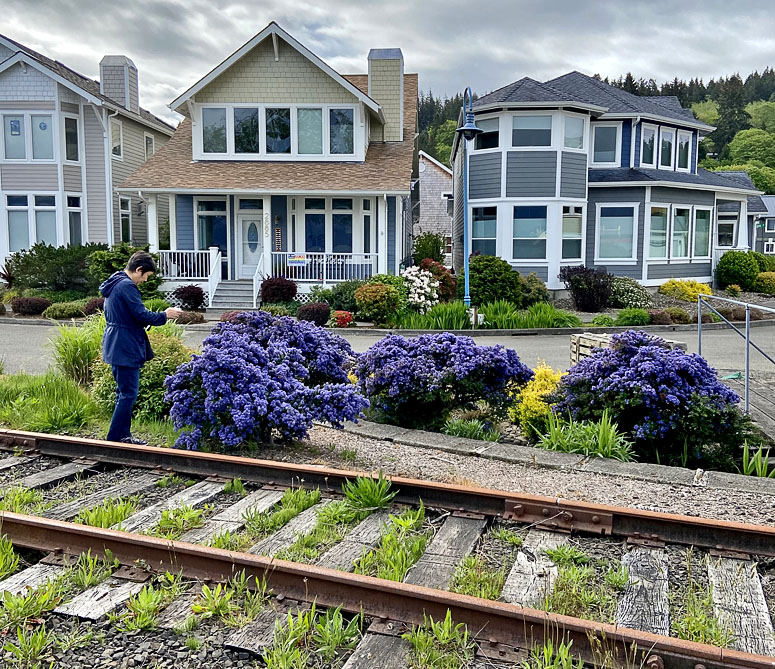A dream home, purple flowers, and trolley line - a perfect combination for me.