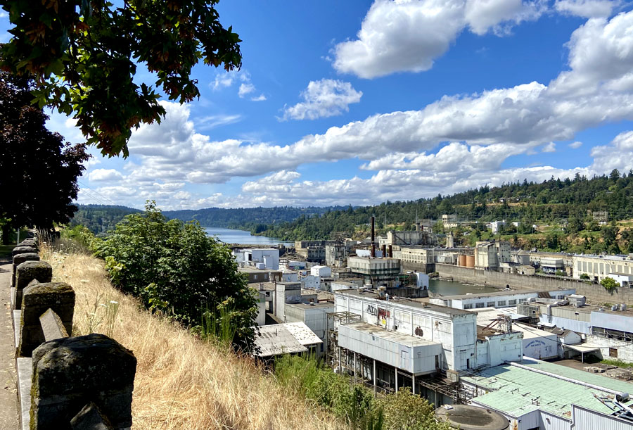 Willamette Falls is visible